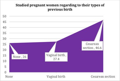 Figure 1: Percentage distribution of the studied pregnant women regarding to their types of previous birth.