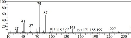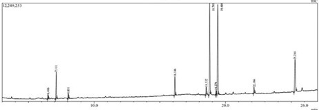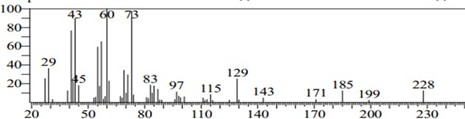 Inject mode: split (split ratio: 50:1), Injector temperature: 240⁰C, Interface: 260⁰C, Oven temperature programmed: 60-250⁰C (3⁰C/min), Carried gas: helium 1.4 mL/min Mass spectra: electron impact (EI+) mode: 70 eV with a mass range of 50 to 550 m/z ion Ion source temperature: 240⁰C.